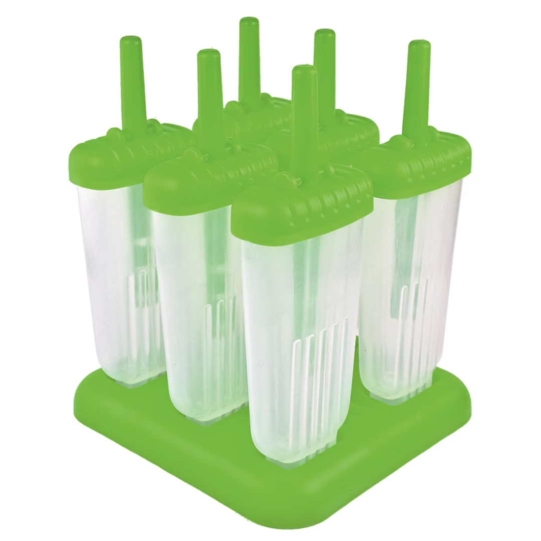 Food safe and BPA-free, these ice pop moulds have a handy drip-guard handle and come with an included base for easy, mess free storage and freezing.