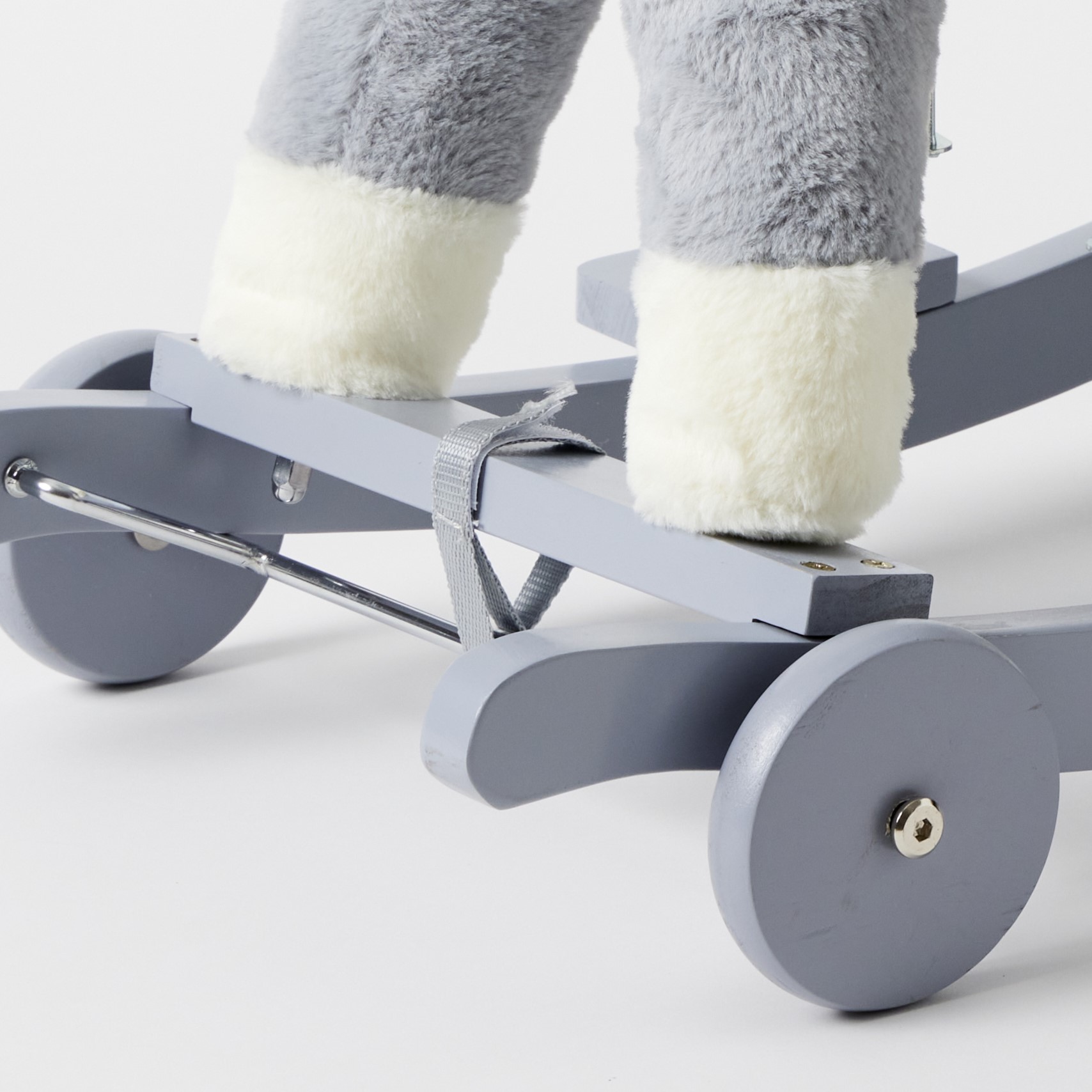 This high-quality, super cute Rock N Roller Rocking Horse will make a perfect addition to any child’s bedroom or playroom. Featuring a sturdy wooden rocking base, comfortable easy grip handles, and a soft plush finish for optimal comfort. With foldable wheel sets, this rocker can also transform into a mobile ride. Little ones will enjoy hours of fun riding on this wonderful Rock N Roller Horse! *Assembly required