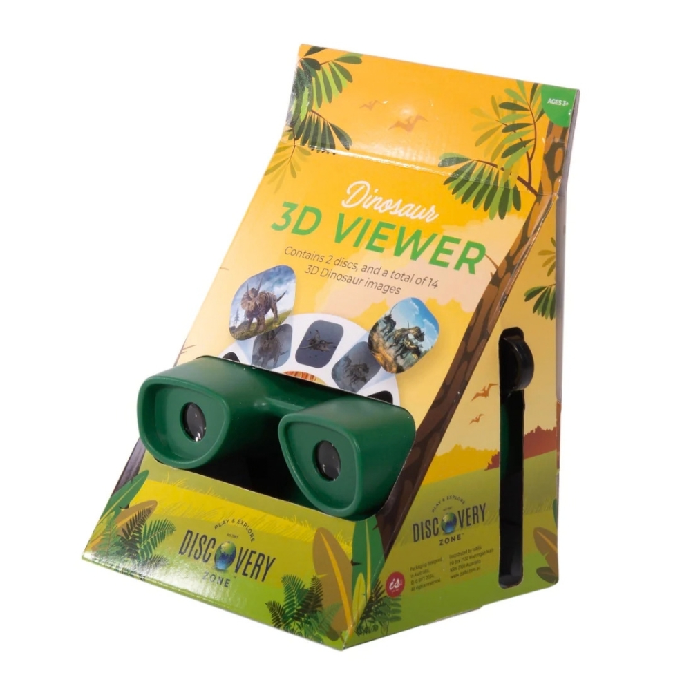 Step back in time and explore the age of the dinosaurs with this fun, retro-style 3D viewer. Kids can discover 14 striking Jurassic scenes across two image discs, all brought to life in 3D. Perfect for young dinosaur lovers, the viewer is simple to use and filled with fascinating visuals.