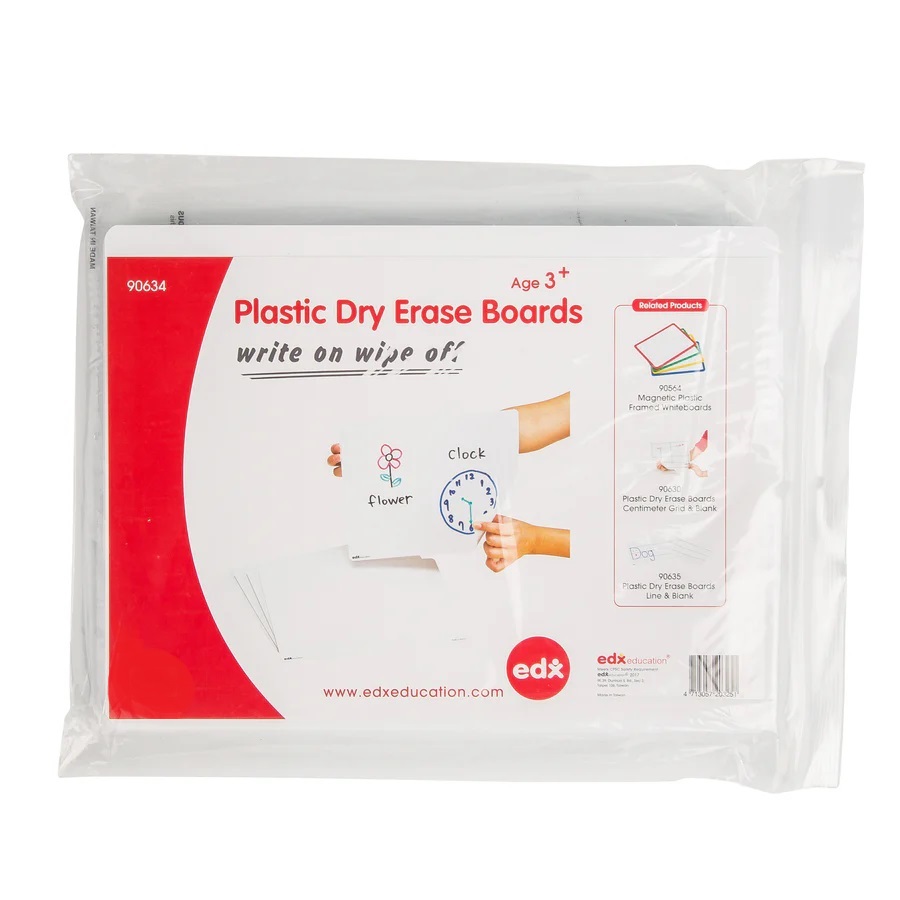 Plastic dry-erase boards measure 23cm x 30cm with blank front and reverse. A fantastic, versatile item that can be used time and time again for a vast array of activities.