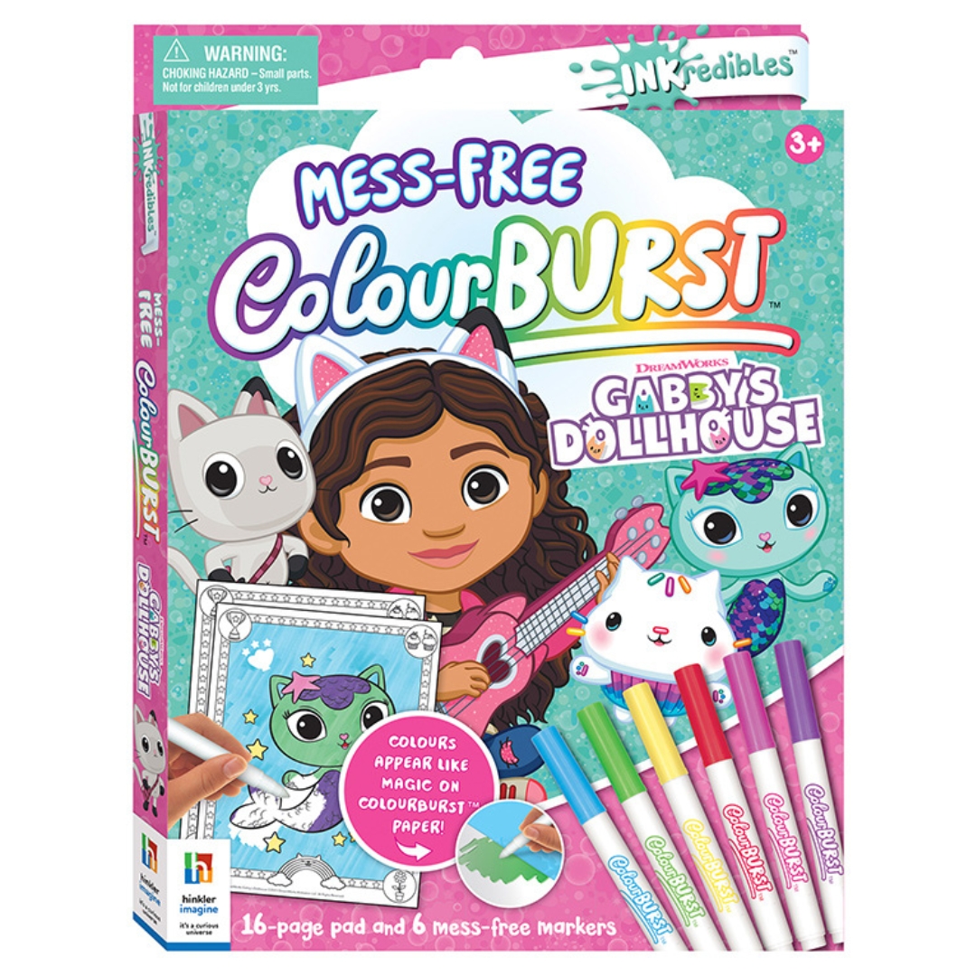 Step into the colourful world of Gabby’s Dollhouse with this magical Inkredibles Colour Burst activity kit! Packed with fun, creativity, and your favourite cat-tastic characters, this mess-free colouring set lets kids bring Gabby and her friends to life in a whole new way. Using the special Colour Burst markers, colours magically appear on the page — no need to worry about mess or stains. Kids will love exploring each page as they reveal hidden patterns and vibrant designs, while parents will love the easy cleanup. Perfect for travel, rainy days, or quiet play at home, this twin-pack offers double the fun and creativity! What’s inside the box: