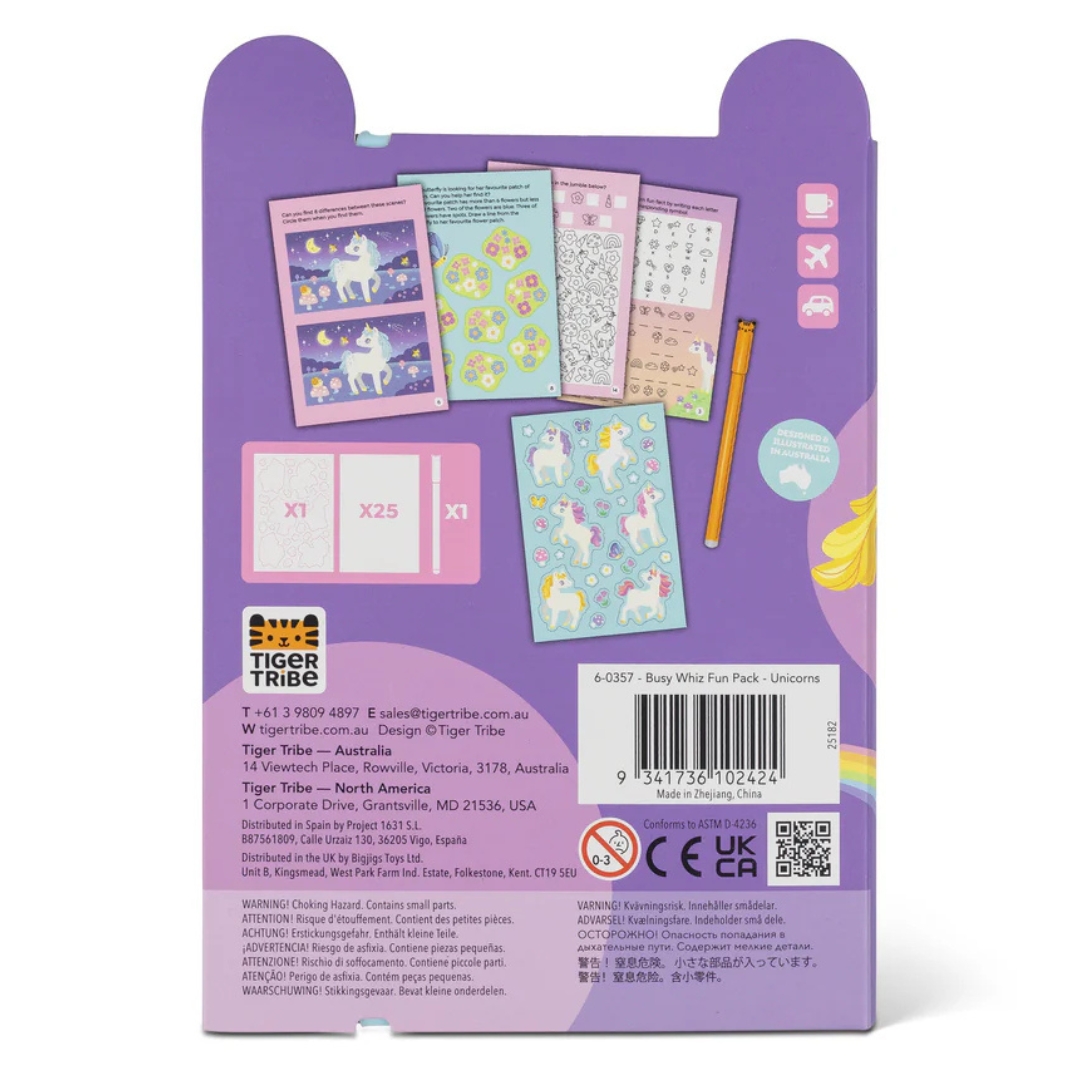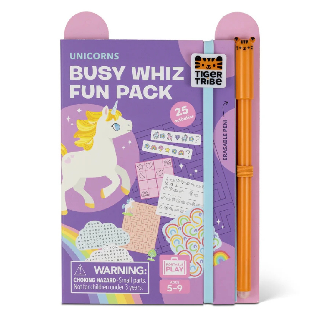 Keep kids busy when it counts—in cafes, waiting rooms, on long drives or rainy days. This compact, lightweight unicorns-themed activity set is packed with mazes, games, word searches and code-breaking challenges, and comes with a nifty erasable pen for repeated play. Why it works: